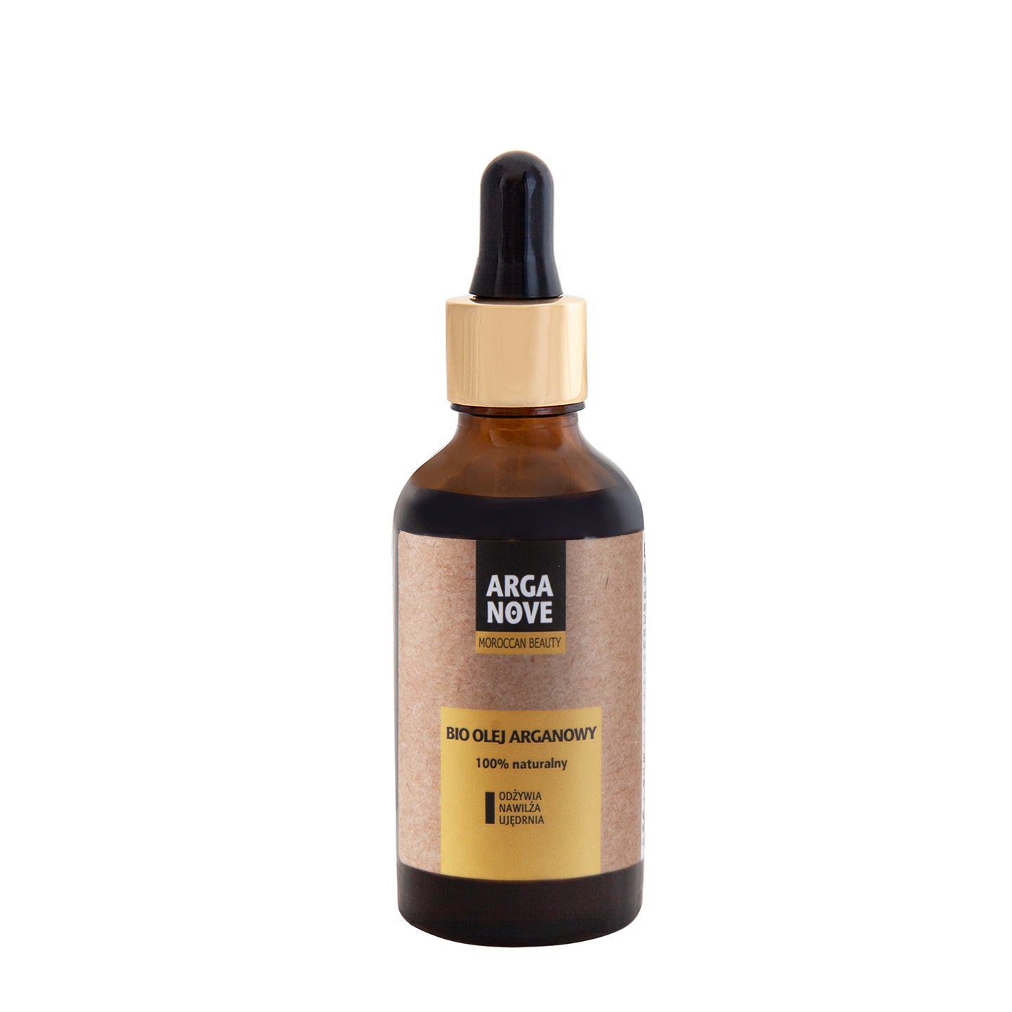 Olej arganowy Arganove nie zawiera sztucznych barwników, konserwantów ani perfum. Szklana butelka zakończona jest pipetą, która ułatwia aplikację produktu.