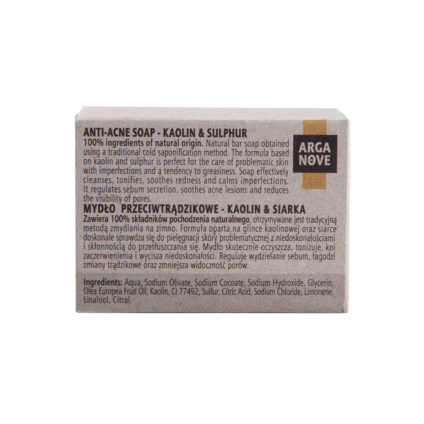 Naturalne mydło otrzymywane jest tradycyjną metodą zmydlania na zimno. Formuła oparta na glince kaolinowej oraz siarce doskonale sprawdza się do pielęgnacji skóry problematycznej z niedoskonałościami i skłonnością do przetłuszczania się.